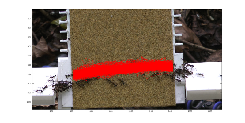 Trajectories of ants of first 1000 frames of a plane which is tilted by 40 degrees